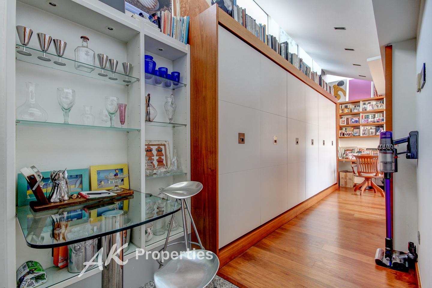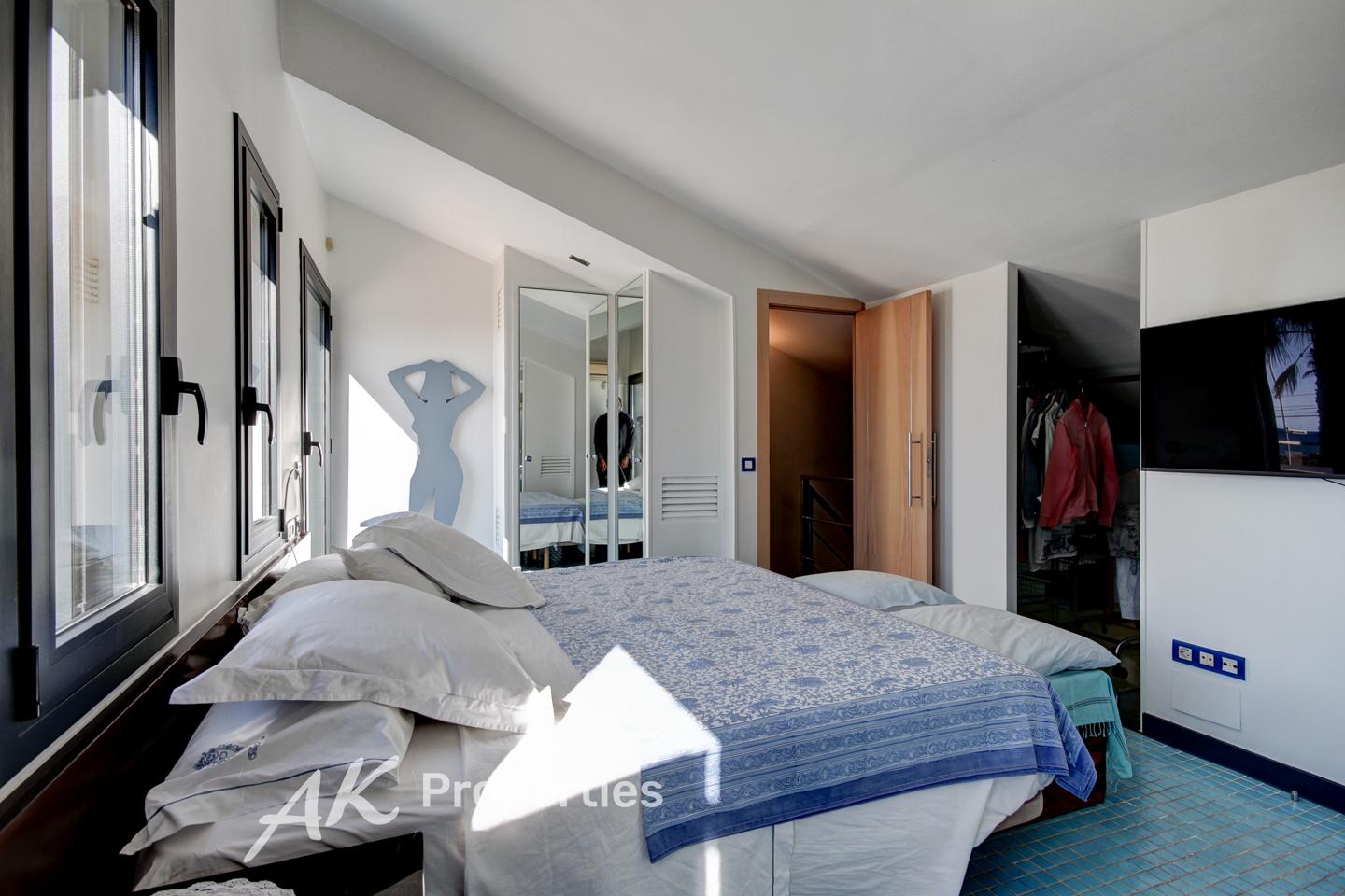 La planta superior está dedicada en exclusiva a la suite principal, un espacio de descanso y privacidad que cuenta con vestidor, baño en suite y una terraza privada con vistas panorámicas al mar.
